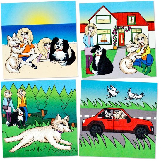SENNA en ANNA de adoptiehondjes is een vrolijk geïllustreerd kinderboekje over twee grote lieve honden die worden geadopteerd door twee blonde meisjes en daardoor voor het eerst van hun leven een avontuur beleven!